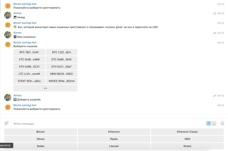Bitcoin savings - Телеграм бот, показывающий капитализацию Ваших криптокошельков