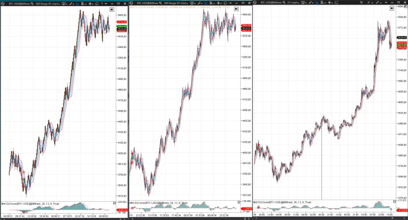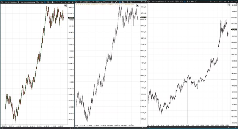 Нестандартные графики в платформе Немаловажным условием для успешного трейдинга является, в том числе, и качественная визуализации биржевой информации. То есть, обычными словами, удобство и простота работы с графиками цен, с чартами. По сути любая биржа, в том числе и криптобиржа, не обязана предоставлять удобные или очень удобные графические инструменты для принятия трейдерами торговых решений. В мире фиатных акций, валют и фондовых инструментов уже давно роль предоставления простого и качественного интерфейса взяли на себя трейдерские или специализированные компании. Именно они конкурируют друг с другом за клиента, обеспечивая простой, удобный, наглядный и унифицированный способ графического предоставления биржевой информации. На крипторынке биржевые площадки, имеющие хороший арсенал графического интерфейса можно пересчитать по пальцам. Унифицированного же инструментария для биржевой информации в виде чартов нет на криптовалютах в принципе. И здесь, очень удобным средством может оказать как раз платформа AtasCrypto. И особенность ее заключается как раз не только в том, что через нее можно выстраивать любой график в любом временном таймфреме: минутка, 15 минутка, 1 час, день, неделя и т.д. Подобные графики, в удобной и простой для понимания и работы форме, все таки, можно найти на некоторых криптобиржах или внешних ресурсах. Особенность платформы AtasCrypto как раз заключается в том, что через нее можно строить нестандартные графики цен, такие как Ренко, Ренджевые, Объемные, Тиковые и др. Особый же интерес, по моему мнению, представляют целое семейство Rangeграфиков, которые строятся по не стандартному алгоритму, и не являются ни один из общеизвестных или общедоступных типов графиков. В платформе AtasCrypto семейство Rangeграфиков имеют дополнительное обозначение литерами X, Z, XV, US. Это все графики, не использующие временную шкалу. Для их построения учитывается только один параметр – цена. Именно она основным и единственным аргументов для расчета ценовых баров. Данные графики являются сами по себе мощными ценовыми фильтрами, которые отфильтровывают любое флэтовое колебание в заданных ценовых параметрах. После этого на график выводятся только ценовые движения без учета затраченного на их формирования времени. Получается, что допустим флэтовая зона на временном графике длительностью несколько часов, а то и дней, то есть 10-30 часовых баров, на графике в RangeX барах может занять занимает пару или десяток баров. Для примера приведены графики одного и того же периода в обычном часовом таймфреме(справа) и RangeX баров с разными параметрами для фильтра для криптовалюты BTCUSDбиржи Bitfinex. Очень наглядно видно разница между количеством баров в часах и RangeXбаров, очень наглядное визуализация трендов и консолидаций. Эти графики также можно анализировать стандартными методами технического анализа, индикаторами, торговыми системами и т.п. Подробнее об этом и других темах можно узнать, оформив демо доступ к фиатной платформе ATAS, на базе которой разрабатывается платформа AtasCrypto по ссылке http://orderflowtrading.net/soft/crypto1 Продолжение следует…. Ps. Не забываем, что если Вы в состоянии помочь в поддержании проекта по развитию ездового спорта Международная гонка на собачьих упряжках (Volga Quest sled dog race), то Вам сюда http://bitalk.biz/threads/13915/