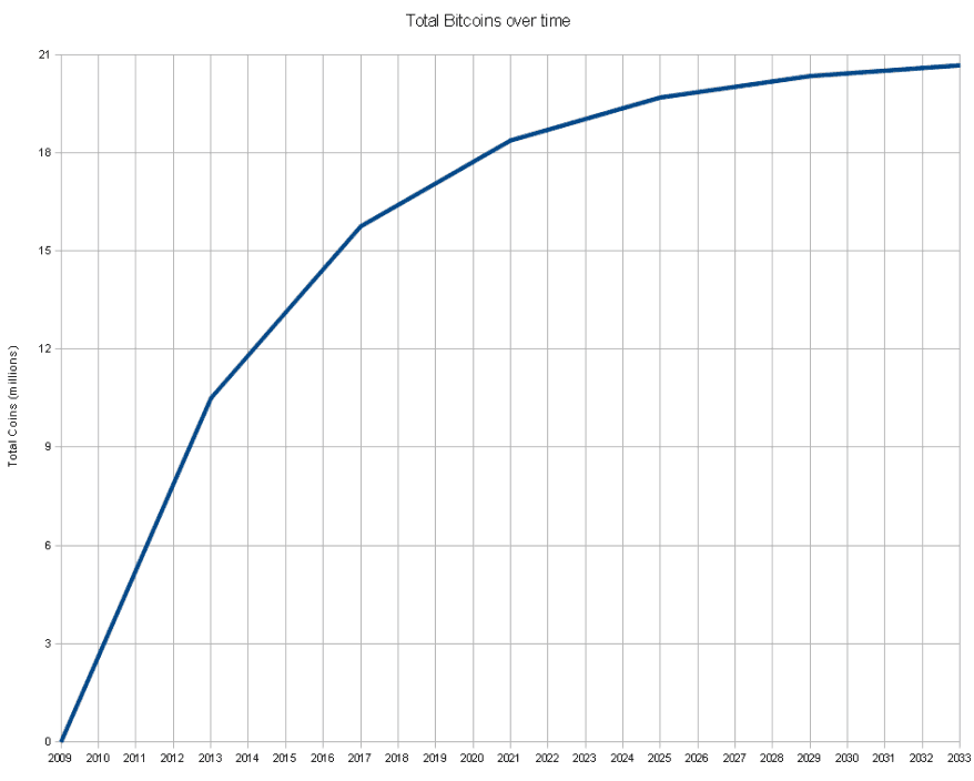 У биткоина строго ограниченная эмиссия: всего может быть выпущено 21 миллион монет, если точно, 20999999.9769. При этом, с каждым годом сложность майнинга увеличивается, а приток новых монет сокращается. Так, к 2020 году, будет добыто около 20 млн. биткоинов, а к 2032 году 20835937 BTC, т.е. за 12 лет около миллиона BTC. Вот график эмиссии биткоина в долгосрочной перспективе. На данный момент (апрель 2018 года) в обороте находится 16957500 BTC (почти 17 миллионов). Но и это не точно, потому что около 3 миллионов биткоинов потеряны, т.е. реально в обороте только 14 миллионов. Как же такое количество биткоинов, на сумму 21 миллиард долларов (по сегодняшнему курсу 7000$ за биткоин, а по максимальному, 20000$ за биткоин, 60 миллиардов долларов), могло потеряться? Что такое потерянные биткоины? Это кошельки с утерянными кодами доступа. Разумеется, коды доступа были потеряны, когда биткоин еще не представлял большой ценности (все знают историю с пиццей за 10000 BTC). Биткоин был создан в 2009 году и за 8 лет развился в масштабную сеть с 20 млн. адресов. Первые 210000 блоков приносили майнерам максимальное вознаграждение - 50 биткоинов за блок. Потому курс на первых порах рос очень медленно - его тормозили большой приток новых монет и низкая распространенность. К биткоину первые 2 года относились с пренебрежением, как к игровой валюте, потому и ключи от биткоин-кошельков массово терялись. Даже купить пиццу за 10000 биткоинов не так досадно, как просто выкинуть (или отформатировать) винчестер с намайненными биткоинами. Получить доступ к этим кошелькам, без ключей, на данный момент невозможно. Все хардфорки биткоина (биткоин кеш, голд и т.д.) уже содержат в своем блокчейне потерянные токены. Как же определить сколько всего потеряно биткоинов? Если считать потерянными кошельки, по которым не было ни одной транзакции с момента первого серьезного роста курса (01.03.2013 г.), то суммарно эти кошельки содержат около 3 миллионов биткоинов. Это важно учитывать при оценке ситуации на рынке: реально в обороте на данный момент находится около 14 миллионов биткоинов на 7 млр. человек населения, а не 17 миллионов, как пишут на криптобиржах.