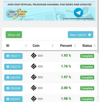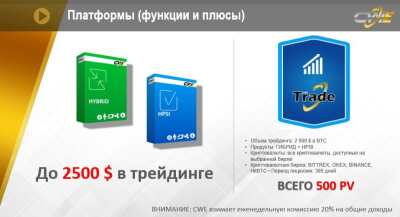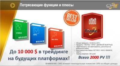 Crypto World Evolution (CWE) Платформа Ultimate Crypto TradingНаше программное обеспечение опирается на сложные алгоритмы, которые запрограммированы для анализа торговых моделей и использования возможностей для получения прибыли на криптовалютном рынке. Наслаждайтесь таким же мощным опытом торговли в любом веб-браузере, телефоне или планшете. Продукты: 1) Торговые роботы = 500 $ в год 2) Торговые роботы = 2000 $ в год Маркетинг : В кабинете присутствуют бесплатные сигналы по 3 Биржам . Робот можно установить уже на 7 крипто Бирж , такие как Binance , Okex , Bitfinex , Bittrex , HitBTC ,Kraken , Bitstamp ! Комиссии : За вывод средств - 10% От дохода за трейдинг 20% в неделю ЗАРЕГИСТРИРОВАТЬСЯ Статистика работы робота: Скриншот сделок от партнера по стратегии Гибрид на сегодняшнее число 07.06.18 Видео с личного кабинета от партнера https://vk.com/video-167402247_456239018 По любым вопросам можете писать в ЛС или обращаться напрямую по контакту @cryptorobotcwe (https://t.me/cryptorobotcwe)