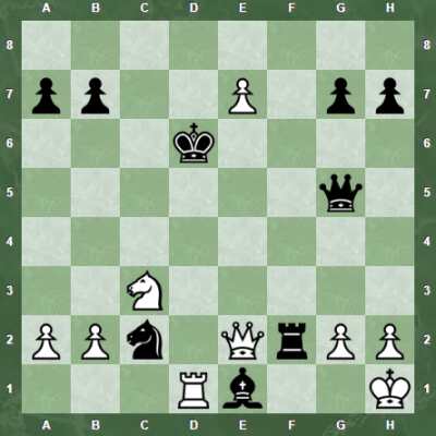 Чего то не хватает мне опыта видимо. как ты тут собираешься выиграть. Коня что ли поставить и как-то шаховать потом? На шахи просто отходить по черным полям будем и все, в упор не вижу мата. если что редактор здесь. https://chess-samara.ru/tools/editor.html Код: 8/pp2P1pp/3k4/6q1/8/2N5/PPn1QrPP/3Rb2K w KQkq - 0 1