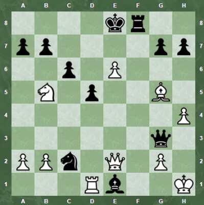 Да нужно сразу так. Код: 4kr2/ppp3pp/4P3/1N1pq3/8/8/PPn1Q1PP/R3b2K w KQkq - 0 1 Нет позиция безнадежная походу.