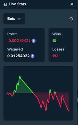 Надо волну ловить, когда включат отдачу. У меня уже 27 депов проебано за 51 день, но после первый проигранных 40к рубасов отбивал до 150к, выбил за 2-4 хориеших ставки 3.3 монеты Bch надо было делать вывод, но игра затянула. Такие ситуации были не однократно, как то за 10 дней в 2018 сожрало пол Битка, за год отбил в 3 раза больше.