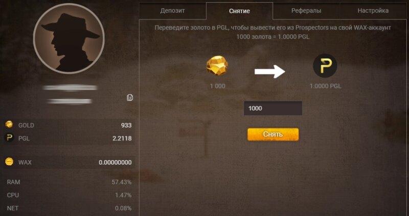 Как начать зарабатывать в Prospectors Мы расскажем Вам о том, как начать зарабатывать в Prospectors не имея вложений, как добывать ресурсы, торговать и создавать инструменты. Прочитав данную статью Вы можете заработать намного больше WAX токенов, чем получали за акцию, где нужно было выполнить три задания. Оглавление Добыча ресурсов ( Ресурсы добываемые без инструментов ) Создание инструментов ( Материалы, инструменты доступные для производства ) Рынок ( Продажа / Покупка ресурсов, материалов, инструментов ) Заработок ( Обмен золотых монет на WAX токены через обменник WAX.WORLD ) Начать играть После регистрации в игре нас будут ждать трое работников, каждый из них может добывать ресурсы, создавать инструменты и переносить 30 кг. 1. Добыча ресурсов Список и кол-во ресурсов, которые можно добывать не имея инструментов: Дерево / Камень = 3 кг в час Уголь / Глина = от 0.2 до 1 кг в час Железная руда = 0.2 кг в час Все ресурсы можно найти практически на каждой клетке, прежде чем бежать добывать какой-то ресурс, убедитесь, что данный участок не занят и на нем можно работать. 1 из 2 Добываемые ресурсы хранятся в инвентаре Ваших персонажей. 1 из 3 2. Создание инструментов Для создание любого инструмента нужны материалы, а т.к. Вы уже научились добывать ресурсы, то создание материалов будет не проблемой. Нажимаем на любого свободного персонажа и открываем окно «Производство», видим все доступные нам материалы, которые можно создать. Брусок = 3 кг дерево Стальной блок = 2 кг железная руда/ 1 кг уголь / 1 кг глина Жесть = 2 кг железная руда/ 1 кг уголь / 1 кг глина Гвоздь = 0.02 кг железная руда / 0.01 уголь 1 из 4 Если Вы уже создали нужные материалы, то переходим к создание самих инструментов, доступных нашему персонажу. Список инструментов и нужные материалы для его создания: Совковая лопата = Брусок 1 шт / Жесть 2 шт / Гвоздь 1 шт Лопата = Брусок 1 шт / Жесть 2 шт / Гвоздь 1 шт Кирка = Брусок 2 шт / Стальной блок 6 шт / Гвоздь 1 шт Молоток = Брусок 1 шт / Стальной блок 1 шт / Гвоздь 1 шт Кувалда = Брусок 2 шт / Стальной блок 10 шт / Гвоздь 1 шт Топор = Брусок 1 шт / Стальной блок 2 шт / Гвоздь 1 шт Пила = Брусок 1 шт / Жесть 1 шт / Гвоздь 1 шт 1 из 7 3. Рынок На рынке можно продать/купить абсолютно все, так мы и будем зарабатывать наше первое золото. 2 из 2 Практически на каждой клетке присутствует свой рынок, чтобы в нем что-то купить или продать, для начала нужно до него добраться. Ресурсы имеют самую низкую стоимость, материалы и инструменты будут стоить намного дороже. Не стоит спешить продавать по заявке покупателя, Вы можете выставить свои вещи на продажу по своей цене и просто ждать пока их купит другой игрок. 1 из 3 4. Заработок Вы уже научились добывать ресурсы, создавать материалы и инструменты, которые можно продавать на рынке, что делать дальше решаете только Вы, развиваться и использовать инструменты для еще большей добычи ресурсов или начать торговать на рынке и немного заработать. 1000 GOLD = 1 PGL = 27 WAX = $0.54 ( по курсу обмена на 9 декабря 2019 ) Заработать 1000 золота на самом деле очень просто и быстро, даже просто продавая свои ресурсы, но советуем Вам изучать цены на рынке и смотреть, что продавать намного выгоднее, материалы, инструменты. Рассмотрим это на примере «Молотка», создать его проще всего. Продать молоток на данный момент можно почти за 5000 золота. 5000 GOLD = 5 PGL = 135 WAX = $2.7 ( по курсу $0.02 за 1 WAX токен ) Теперь возвращаемся к получению W