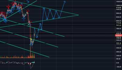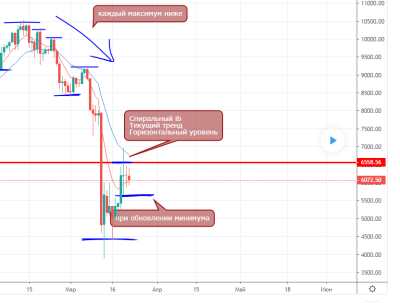Разные прогнозы и сценарии Соучредитель обучающего хаба YellowBlock написал у себя на странице в Twitter, что недавний рост биткоина не будет долго продолжаться, поскольку сильное давление со стороны продавцов криптовалют и массовое желание выйти в краткосрочной перспективе на прибыль спровоцируют внезапное падение цены биткоина. ---------------- TradingDrift Для покупок нужно пробивать зону сопротивления и при откате к границе треугольника или свежей поддержке можно покупать. Для продолжения похода похода вниз нужно пробивать экстремум - 4381. ----------------- Отрицательные ставки по депозитам в США в попытке стабилизировать систему — «мегабычий» сигнал для биткоина, уверен сооснователь компаний Gold Bullion International и 10T Holdings Дэн Тапиеро. ----------------- BSOD Trade Новый виток роста, происходящий на оптимистичных настроениях игроков в преддверии майского халвинга, не мог длиться вечно: несмотря на ложный пробой, продавец смог удержать уровень 6900 и отправить цену на коррекцию. Весь интерес текущей ситуации заключается в том, что её развязка станет основой дальнейшего среднесрочного движения рынка. Если покупателю удастся удержать поддержку 6115, то мы увидим повторный заход на 7000, который ещё сильнее подстегнёт оптимизм трейдеров в сторону роста цифрового золота перед халвингом. Иначе - цена рискует провалиться на ретест круглых 5000, после которого покупатель перейдёт к ещё более осторожной тактике. В данный момент цена закрепилась над уровнем 6000, а значит шансы на рост по-прежнему присутствуют. ---------------- Цена биткоина следует паттерну BARR (Bump and Run Reversal), так же как и перед началом ралли в апреле прошлого года. На это обратило внимание издание NewsBTC. В середине апреля 2019 года биткоин-трейдер под ником b.biddles написал, что биткоин сформировал дно BARR «как по учебнику», и предсказал старт бычьего рынка. Движение цены биткоина с 7 марта этого года имеет все признаки формирования аналогичного дна BARR: вертикальное падение, консолидация, выход за линию тренда и возврат к ней для тестирования уровня поддержки. ---------------- CryptoWolfSignal "Ласт Кисс", или Последний Поцелуй - ситуация, при которой цена после мощного пробоя трендовой линии возвращается к ней. При таком возвращении возможны две ситуции: пробой и отскок. Отскок и возобновление движения прошлого пробоя и есть "Ласт Кисс". На самом деле, для криптовалюты эта ситуация достаточно тревожная: 20 марта 2020 г. мы не пробили трендовую, цена не смогла закрепиться выше нее на дневном графике и оттолкнулась длинным хвостом. Поэтому сейчас в приоритете короткие позиции (шорт). Однако та самая трендовая дает один четкий сигнал: роста не будет, пока она не пробита полноценно. И уровень для такого пробоя на текущий момент - это 6500$. Если цена будет консолидироваться в боковике, сдвигаясь вправо, то значения трендовой из-за ее наклона также будут всё ниже, и для возобновления роста нам нужно будет пробить всё более низкий уровень. Однако в течение двух ближайших дней ключевым уровнем останется именно 6500$. И пока не похоже, что у цены есть силы пойти на новый полноценный штурм. ---------------- Мы образовали клин, но он был пробитый но на мое мнение он пробитый временно, это только вопрос времени. Так вот после неудачного тест уровня поддержки на 7800-8000 мы ушли в низ, но как мы видим не надолго уже был пробит уровень 6600, также мы сделали тест внутреннего канала линий с