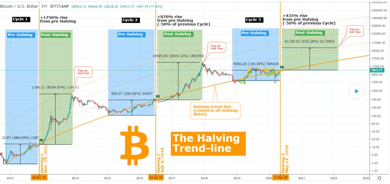 Биткоин 70 к$ после халвинга по аналогии с предыдущими буллранами