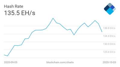 Сложность майнинга первой криптовалюты по состоянию на начало октября держится на уровне 19,30 трлн хешей (Т). Хешрейт за этот же период опустился с рекордного показателя в 143,1 EH/s до 135,5 EH/s. По итогам сентября майнеры биткоина заработали $328 млн, что оказалось на 11% меньше, чем в августе. Сокращение произошло на фоне снижения цены первой криптовалюты на 8% в течение сентября.