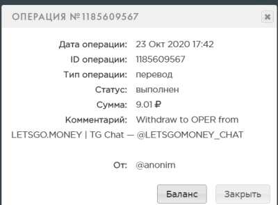 Я не админ и не владелец проекта. Вся информация взята с сайта проекта. Старт проекта 17.10.2020 Реферальная ссылка для регистрации https://letsgo.money/?r=3836 Подарок: Самолёт «Cessna 172» Об игре: Игра Без Баллов С выводом реальных денег от 1-100 рублей! Letsgo money — уникальная в своем роде экономическая игра для развлечения и заработка разработанная опытной командой под управлением международной компании DriftGames Limited. Развивайте собственную транспортную империю и зарабатывайте реальные деньги. В Letsgo money представлены сразу три экономические модели, регистрация совершенно бесплатна, а сам проект не требует ни каких инвестиций для осуществления выплат своего заработка. В Letsgo money существует 6 способов заработка, большинство из них не требуют никаких инвестиций и денежных вливаний. Вот несколько из них: «Самолёты», «Корабли», «Поезда», «Сёрфинг сайтов», «Задания», «Партнерская программа». А так же дополнительные бонусы - бесплатная «Лотерея», «Ежедневный бонус». Полноценно с каждым из них рекомендуем ознакомиться после регистрации своего аккаунта. Виды заработка без вложений: Ежедневный бонус: до 1000 руб Задания: до 300 руб Сёрфинг: на вывод Лотерея: каждый час - для всех Маркетинг: Начисления: ежесекундно Распределение дохода: 100% на вывод Инвестиционные планы: от 10 до 180 дней Общая доходность самолётов: от 20 до 36 % за 30 дней Общая доходность кораблей: от 103% до 145% за рейс Отсутствие платежных баллов! Аэропорт — это начало вашего пути в проекте. Сразу после регистрации, для максимально быстрого знакомства с проектом Вы получаете свой первый самолёт — «Cessna 172». Каждый самолёт зарабатывает фиксированную сумму за каждый час работы. Всего для покупки в Аэропорте доступны 12 самолётов, у каждого разная цена, скорость и окупаемость. Вы можете купить любой самолёт неограниченное количество раз. Срок работы всех самолётов составляет 180 дней с момента покупки, по истечению этого срока самолёт перестает приносить прибыль и удаляется из Вашего аэропорта. Рейсы — это отличная возможность в короткие сроки получить максимум прибыли! Начав выполнение любого из рейсов Вы будете получать прибыль ежесекундно в течение всего срока выполнения, который составляет от 10 до 90 дней в зависимости от конкретного рейса. Всего для покупки доступны 9 различных рейсов, одновременно Вы можете выполнять каждый из них только один раз. Как только срок выполнения начатого Вами рейса подойдет к концу Вы сможете начать его выполнение повторно, тем самым получив еще больше прибыли. На прибыль от рейсов не влияет бонус от «Гонки лидеров». Вы не можете начать выполнение любого понравившегося Вам рейса, сначала необходимо начать выполнение предыдущего. Бонусы: При регистрации дается: Самолёт «Cessna 172» За каждого реферала - 7% от его пополнений баланса «для покупок» на счет для вывода с 1ого уровня За каждого реферала - 3% от его пополнений баланса «для покупок» на счет для вывода с 2ого уровня За каждого реферала - 5% от всех пополнений баланса «для рекламы» на счет для вывода рефералом 1 уровня За каждого реферала - 20% от заработка реферала в разделе «Сёрфинг сайтов» Платежные системы проекта: Пополнить можно через: Пополнение в Letsgo реализовано через платежные системы Payeer, PerfectMoney, QIWI, Yandex.Money, Bitcoin, Ethereum, Free-Kassa, Наличные и другие. Пополнить свой баланс в проекте Letsgo можно через валюты: RUB, USD, EUR и криптовалюты. 