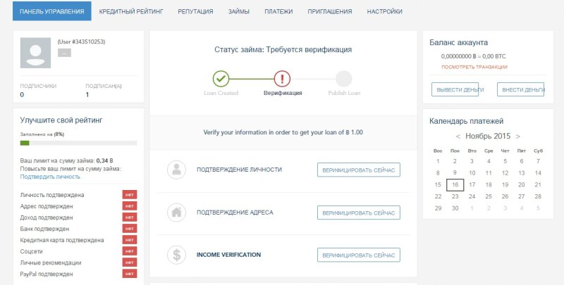Не так там все и просто, как казалось изначально. Чтобы пользоваться сервисом нужно загрузить кучу документов: права, паспорт, счет за коммунальные услуги и т.д. И сервис не русский, просто скрипт определяет язык в настройках браузера. После заполнения заявки мне предложили займ под 22.8% годовых, что очень неплохо для онлайн-кредитования. Не смотря на сложность верификации, от кидалова она вряд ли поможет. Счет за коммунальные услуги можно подделать, как и документы.. или загрузить доки дропа. Раскаченный аккаунт в социальных сетях опять же можно купить. Начальный кредитный лимит 0.34 биткоина, что прилично по нашим российским меркам - есть смысл заморачиваться с дропами и подделывать доки. Появится время попробую залить туда чужие данные, проведу эксперимент.