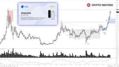 Своим видением ситуации поделился основатель проекта Crypto Mentors Никита Семов. ------------ На прошедшей неделе был большой спред и маленький объем, что свидетельствует о легкости в направлении покупок. Прогресс увеличивается и цена подходит к ключевому уровню в $20 000. Ожидаем от наступившей недели закрытие баром покупок. Но будьте внимательны, у данной горизонтали может пойти коррекционная волна. Полагаем, что в дальнейшем она не будет значительной по углу атаки. Японские свечи показывают модель «Ерикири» — бычья бодзу, большая белая свеча, признак значительной силы. В контексте данной модели также ожидается рост. Price Action и VSA Анализируя спотовый график можно сделать вывод о наличии баланса, имеющего форму реаккумуляции на часовом графике. Атака продаж слабая и безинициативная, тем не менее формируется локальный паттерн ложного пробоя на оттестированный уровень $18 969. Это является девиацией, а значит может последовать снижение цены примерно к отметке $18 350, откуда уже нужно будет следить за реакцией быков. Потенциальной точкой входа в лонг может быть импульсный пробой горизонтали с закреплением. Биткоин выглядит очень сильно, шортить такое движение с удержанием больше суток просто бесполезно. Анализ горизонтальных объемов и дельты На данный момент цена выглядит крайне позитивно. Мы уже закрепились над всеми важными POC и VA баланса. Однако учитывая тот факт, что сам пробой оказался слабым, а по верхам выскочили объемы [1], можно ожидать откат к зоне стоимости текущей недели — в район $18 400-$18 690. После этого вероятно возобновление восходящего движения. Также можем видеть интенсивный рост ОИ [2], что говорит об истинности данного движения. В глобальной перспективе биткоин смотрится крайне лонгово.