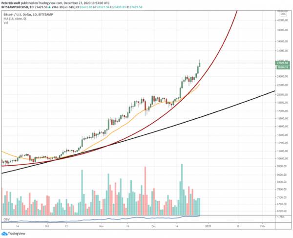 Биткоин формирует параболическую линию тренда, но опытный трейдер видит возможность коррекции