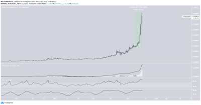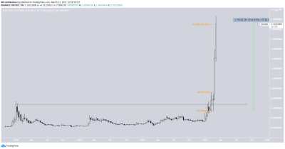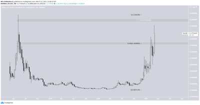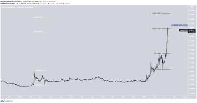 Редакция BeInCrypto составила топ-лист альткоинов, которые продемонстрировали максимальный прирост за неделю с 5 по 12 марта. К ним относятся: Chiliz (CHZ) – 300% SKALE Network (SKL) – 247% Theta Fuel (TFUEL) – 182% Polygon (MATIC) – 130% Hedera Hashgraph (HBAR) – 79% Enjin Coin (ENJ)- 75% Ziliqa (ZIL) – 63% Chiliz (CHZ) Курс CHZ стремительно рос последние 17 дней и укрепился на впечатляющие 1600%. Одним из факторов поддержки для коина стало его включение в листинг платформы Changelly. Технические индикаторы подают бычьи сигналы, но ралли выглядит слишком перекупленным. На момент написания индекс RSI находился в зоне перекупленности уже 11 дней. Курс CHZ не только достиг исторических максимумов, но и пробил все важные уровни внешней коррекции Фибо. В этой связи ожидается, что параболический рост цены скоро закончится, поскольку подобные темпы являются неподдерживаемыми на долгосрочной основе. Skale Network (SKL) Курс SKL стремительно растет с 8 марта. В моменте прирост цены составлял 350%, и рынок обновил исторический максимум на $1.26. Напомним, что 9 марта SKL был добавлен в листинг Coinbase Pro. Впрочем, сейчас рынок находится в процессе формирования свечной модели «падающая звезда». Кроме того, цена уже пересекла уровень Фибо 4.618 коррекции последнего снижения, который является потенциальной областью разворота. Таким образом, цена коина может опуститься теперь к области поддержки $0.6-$0.72 (Фибо 0.5-0.618 коррекции). Theta Fuel (TFUEL) TFUEL укрепляется с 6 марта и выросла за это время на 257%, достигнув исторического максимума на $0.459. Технические индикаторы пока не демонстрируют признаков слабости, однако курс коина уже превысил все важные уровни внешней коррекции Фибо. Кроме того, ралли становится полностью параболическим. В этой связи мы не исключаем продолжения краткосрочного роста, однако в долгосрочной перспективе такая динамика вряд ли окажется устойчивой. Polygon (MATIC) Курс MATIC 11 марта почти удвоил свою стоимость, отметив максимум на $0.54. Однако в процессе цена сформировала длинный верхний фитиль, на следующий день подкрепленный еще одним фитилем. Помимо этого, последний бычий ход выглядит как завершенная бычья импульсная структура. Отношение длины волны 5 к волнам 1-3 составило 1.61, что делает эту область потенциальной областью разворота. В этом случае коин может просесть в область $0.36-$0.32 (уровни коррекции Фибо 0.5-0.618, черный цвет на графике.) Как и SKL, MATIC также был включен в листинг Coinbase Pro 9 марта. Hedera Hashgraph (HBAR) Курс HBAR отметил 24 февраля минимум на $0.09 и с тех пор почти утроил свою стоимость, достигнув 12 марта максимума на $0.279. Впрочем, коин торгуется внутри области потенциального разворота, расположенной в районе $0.26-$0.275 и сформированной уровнями Фибо внешней коррекции двух последних снижений. Если цене удастся преодолеть их, следующей областью потенциального разворота станет $0.328-$0.346. Enjin Coin (ENJ) ENJ повторно протестировал 24 февраля сопротивление бывшего исторического максимума и с тех пор активно растет. Цена укрепилась уже на 515% и сформировала 12 марта новый исторический максимум на $2.26. Впрочем, это движение происходит по параболе и потому не сможет быть устойчивым в долгосрочной перспективе. Кроме того, курс ENJ достиг уровня Фибо 4.61 коррекции последнего снижения. Это – потенциальная область разворота. В этой связи рынок может вскоре начать коррекцию. Ziliqa (ZIL) Курс ZIL тоже растет последние две недели, превысив уровень Фибо 0.618 коррекции предыдущего медвежь