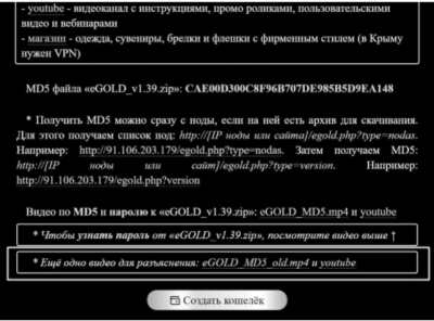 ВСЕГДА есть то ,что ВАМ нужно! Присоединяйтесь в телеграмм https://t.me/eGOLDpro для дополнительной информации! Часто у людей возникают вопросы по проверке MD5 архива и паролю к нему. По этому на сайте https://egold.money добавлено предыдущее видео для более подробного разъяснения по MD5 архива и паролю к нему. Для многих это видео понятнее. Также это видео добавлено и на страницу в обменнике: https://www.egold.pro/wallet Сама ссылка на страницу с ресурсами, инструкциями и видео, в том числе по проверке MD5 архива и паролю к нему добавлено сразу на главную страницу ниже таблицы с лотами.