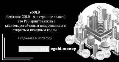 Монета #eGOLD - это стейблкоин привязанный к стоимости самого стабильного товара на земле - золоту. ---------------------------------------------------------------------------------------------------------------------—--------------------------------------------------------------------------------------- Сейчас разработчик занимается переносом , возможностей кошелька eGOLD.html в мессенджер ТЕЛЕГРАММ, имеющий многомиллионную аудиторию. После запуска лёгкого кошелька eGOLD в ТЕЛЕГРАММ у каждого пользователя ТЕЛЕГРАММ появится возможность купить и продать монеты eGOLD автоматически, так же быстро, как на сайте egold.money и появится возможность создания кошелька самому себе. Кошелёк будет настолько простой, что им сможет воспользоваться любой человек. -----------------------------------------------------------------------------------------------------------------------—-------------------------------------------------------------------------------------- Монета стабильна и существует уже больше года. Технологические возможности монеты и кошелька действительно революционны и защищены от взлома даже квантовыми компьютерами и пропускная способность транзакций в секунду не ограничена. Летнее снижение ликвидности eGOLD носит временный характер. Аналогичную ситуацию мы видим и в других криптовалютах, которая сейчас привела к снижению их стоимости. В некоторых случаях, в десятки раз. Но цена монеты eGOLD останется неизменно привязанной к курсу золота, хоть это и уменьшает оборот криптовалюты в количественном соотношении и периодически делает недоступным выкуп во всех автоматических сервисах, но сохраняет средства владельцев eGOLD. В любом случае, Вы всегда можете выставить монеты на P2P обменниках, таких как egold.pro (полный список ресурсов на сайте egold.money). Да, сейчас продажа может занять больше времени, чем обычно, но курс монеты всегда равен 1/100 000 тройской унции золота, что гарантирует сохранность Ваших средств. =================================================================================================================== Рассказывайте о монете в соцсетях, участвуйте в наших акциях - это значительно увеличивает скорость развития монеты и повышает её ликвидность. Только ВМЕСТЕ МЫ МОЖЕМ создать потрясающую и честную экосистему ,на основе криптовалюты , не имеющей аналогов во всём Мире! ===================================================================================================================