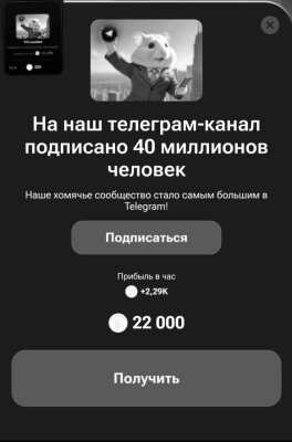 Hamster Kombat - проект, который уже обогнал Notcoin по популярности! Про Notcoin большинство уже в курсе, однако далеко не каждый знает о том, что внутри Telegram есть проекты, которые по популярности превосходят Notcoin, и соответственно, могут принести большую прибыль своим игрокам. После листинга Notcoin, мне удалось заработать более 50 тыс. руб. Регистрируйся по ссылке и получи 5000 монет! Скоро будет листинг. Поэтому не упустите возможность заработать денег. Ведь потом эти монеты перейдут в реальную прибыль!!! Для перехода в игру нужно : ✅ Перейти по ссылке в ТГ БОТ ✅ Нажать ( ИГРАТЬ В 1 КЛИК ) ✅ Тапайте (кликайте) по хомяку зарабатывай монеты. Увеличивайте пассивный доход, переходите на следующие уровни. ✅ Забирайте бонус от 1500 до 7000 монет. ✅ Забирайте ежедневный бонус ✅ Выполнение разные задания.
