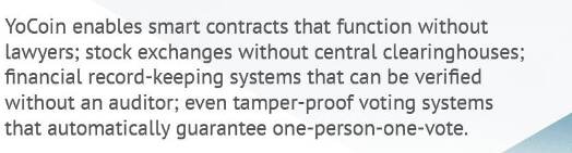 В отличие от большинства альтернативных криптовалют, YoCoin является децентрализованная, одноранговая цифровая Валюта, основанная на алгоритме scrypt алгоритм майнинга, что делает его гораздо более доступным, чем Биткойн, когда дело доходит до добычи. Любой с приличной видеокартой компьютера, может начать добычу YoCoin дома. Для тех, кто хочет купить YoCoin, существует несколько бирж- с-Сех, SafeCex, Alcurex, CoinExchange, Bloombit и другие. офсайт: http://www.yocoin.org В отличие от большинства альтернативных криптовалют, YoCoin добывается на основе алгоритма Scrypt-майнинга, что делает его гораздо более доступным, чем Bitcoin, уверены в самой компании. Таким образом, любой человек с хорошей видеокартой в своем компьютере сможет добывать цифровую валюту YoCoin дома, не тратя больших усилий. YoCoin-кошельки доступны для таких операционных систем, как Linux, Mac OS X и Windows. А для тех, кто хочет купить несколько монет нового конкурента Bitcoin, доступны такие биржи: C-Cex, SafeCex, Alcurex, CoinExchange, Bloombit и другие. Своей целевой аудиторией создатели YoCoin называют поколение миллениалов, или поколение Y (родившиеся после 1981 года). По мнению разработчиков, именно это поколение более склонно принять и активно использовать новые цифровые деньги. Уже в ближайшее время компания планирует представить мобильный кошелек для пользователей Android-устройств, а также наладить выпуск физических монет YOC. Правда, последние будут в большей степени использоваться в качестве подарка или дополнения к коллекции нумизматов. Источник