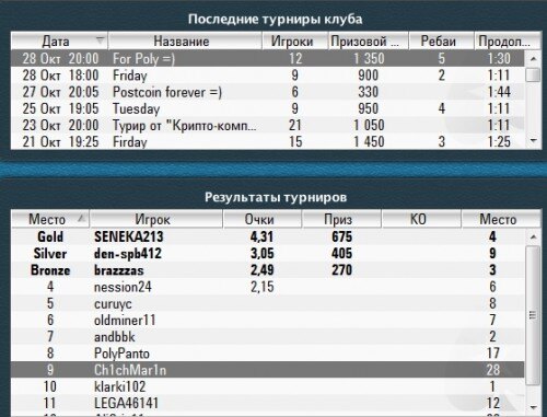 Результаты турниров от 28 октября : Призовые всем выплачены : Напоминаю ,что сегодня в 20 00 по Мск,состоится покерный фриролл от "Крипто-Компас"