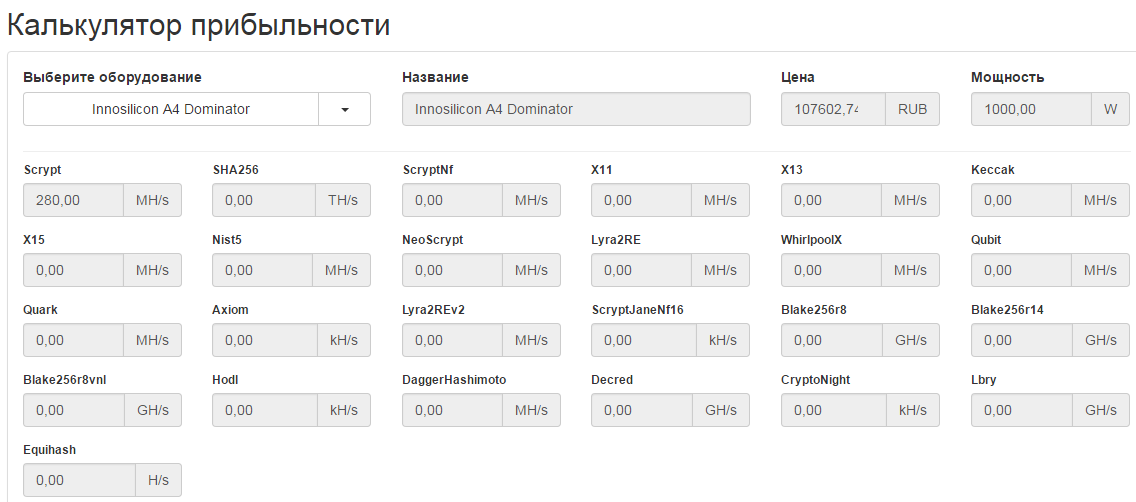 Ну смотри, по расчётам, если брать Доминатора за свет всего 1700 будет уходить, по сути и мощность 1 Квт всего, а у компа больше вентиляторов/компонентов. Выгодней всё-равно подешевле асики взять, на Х11 вроде много монет майнится.