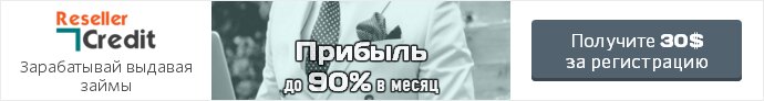 Reseller Credit Заработать на выдачи микрозаймов. За регистрацию дают 30$, на них и начинаем крутиться. Минимальный срок займа – 3 дня. По истечению получаем 0.92$. Снова выставляем заявку на займ и т.д. Минималка на вывод 10$. за месяц с копейками вполне можно накопить и вывести 10 долларов. Реферальная система: 30.00 $ За друга Бонус за приглашенного партнера Приглашая друзей вы будете зарабатывать не только от выдаваемых ими займов но и 30.00 $ за приглашение друга. Условие 1. Пригласите друга по реферальной ссылке 2. Приглашенный друг должен подтвердить свои паспортные данные, после чего на ваш баланс поступит 30.00 $ Ссылка для регистрации - https://goo.gl/cIW4nV Это вкратце. Кому интересно, вот официальная информация: О проекте Микрозайм - один из основных видов микрофинансирования, заключающийся в выдаче небольших кредитов людям, которые не имеют доступа к традиционному банкингу в силу разных причин. В среднем годовая прибыль кредитных организаций составляет 720% годовых, а при лучших раскладах доходит до 1000%. Как вы можете заметить из представленных данных, эта беспрецедентная прибыль поступает в руки только представителей данных организаций. В последнее время, с приходом свободного доступа к интернету практически в каждый дом, стали отпадать такие потребности как: - физическое присутствие человека при оплате коммунальных услуг; - походы по магазинам (т.к. все чаще данные операции стали производить не выходя из собственного дома, что позволило сохранить время и силы на более важные дела); - заказ и бронирование авиабилетов и ж/д билетов и многое другое. Переформатирование потребительского сознания происходит практически на наших глазах, неумолимо продвигая технологии вперед, заставляя двигаться более неподвижные сферы услуг. Таким образом, современные технологии сформировали более удобную и практичную нишу - микрокредитование онлайн. В отличии от конкурентов наша компания, упрощая ведение дел, пошла другим направлением, объявив о том, что микрозаймы с сегодняшнего дня выдаются не юридическим лицом, а физическим. Данный подход дает возможность заработать на выдачи займов*, из свободных личных средств, немалому числу граждан нашей необъятной страны. ( *заемщикам из тех же граждан, но которые в этом нуждаются по тем или иным причинам) В данном предложении мы выступаем посредническим лицом, скрепляющее обязательство между кредитором и заемщиком, следя за его соблюдением и выполнением. В случае не возврата по обязательству, со стороны заемщика, каждый выданный займ застрахован гарантийным фондом, который формируется из комиссионных сборов. Таким образом, на рынке микрокредитования наша социальная платежная система формирует спрос и предложение для желающих зарабатывать на выдачи займов, параллельно предлагая приемлемые условия заемщикам, не обременяя их завышенной кредитной ставкой. Как заработать в проекте Выдавай-те микрозаймы с высокой процентной ставкой, благодаря чему вы будете получать ежемесячную прибыль до 90% от выданной суммы заемщику. Выдачу займа можно произвести с баланса и основного кошелька. После подачи вашего займа он поступает в общий каталог, где заемщики в праве рассмотреть ваше предложение и придти к решению принять ваши условия займа или нет. Время ожидания до момента, когда ваш займ примет заемщик зависит от процентной ста