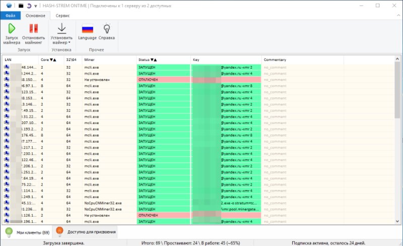 HASHSTREM ONTIME \ ИНСТРУКЦИЯ \ ИЗМЕНЕНИЯ Данное приложение позволяет централизовано управлять майнерами на всех доступных Вам рабочих станциях. ONTIME имеет БЕСПЛАТНЫЙ режим, вы можете бесплатно использовать программу неограниченное время но не сможете подключить к центру управления более 20 рабочих станций одновременно. Основные функции: клиент работает скрыто, представляет собой сервис ОС Windows (совместимо начиная с vista) установка клиентского модуля осуществляется простым кликом по инсталлятору (так-же, возможно скрыто) простой мастер создания инсталлятора (в народе билдера) скрытая удаленная установка любого майнера CPU\GPU (Пул по умолчанию mainergate, можете сменить) скрытый удаленный запуск любого майнера контроль работы майнера автоматическое восстановление майнинга после включения рабочей станции Цена 1.6 руб - 1 ПК \ месяц Более подробную информацию вы найдете на нашем официальном портале www.hashstrem.ru HASHSTREM (Автономная версия)\ ИНСТРУКЦИЯ \ ИЗМЕНЕНИЯ автономная версия, работает по принципу цу<>км При таком способе передачи данных в роли сервера выступает непосредственно ваша рабочая станция и клиентские модули работают с вами напрямую, минуя «сервер посредник». Бесплатный режим до 50 рабочих станций Автономная версия оплачивается однократно, на все время использования. Клиентские модули автономной версии совместимы с клиентскими модулями ОНТАЙМ версии. Обратите внимание, клиентские модули всех продуктов HASH-STREM работают скрыто исключительно чтобы не отвлекать пользователей. Мы не поощряем и не рекомендуем использовать данное ПО в незаконных целях. Вся ответственность лежит исключительно на Вас. Оставьте в данной теме свое мнением о нашей программе. Так-же, сюда можно писать замечания в работе, пожелания, идеи и т.д, помогите нам сделать ее лучше! Просьба не использовать данную тему для решения технических вопросов, обратитесь в нашу техническую поддержку. ____________________________________________________ Обратите внимание, мы НЕ ЗАНИМАЕМСЯ разработкой собственного майнера, и вышеупомянутое программное обеспечение манером не является. Отзывы о нашем ПО вы можете почитать на форуме майнергейта