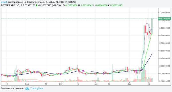 XRPUSD обозначил новую волну роста. Потенциал более 150% Ripple выходит из длившейся неделю консолидации. Если ему это удастся (ценой закрытия сегодняшнего дня), то расчётный потенциал роста кратный: от текущей цены около 150% - $2.45 Как мы писали ранее, волны роста криптовалют кратно увеличивают цену. Более того, по наблюдениям, кратность повторной волны зачастую выше, чем у предыдущей (см Litecoin, Monero) Отмена идеи при закрытии дня ниже $0.65 Рекомендация: покупать #icex #bitcoin #криптовалюты #инвестиции #биржа #news #Анализ #Ripple #XPR