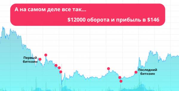 Сегодня не будет никакой success story, но расказ менее интересным от этого не станет. Расскажу я о том, как в прошлом году году покупал-продавал биткоины, и что из этого получилось Предыстория Для того, чтобы понять, что мной руководило в момент первой покупки — о биткоинах слышал давно, еще когда они по 20 долларов были. В 2013 году даже хотел купить по курсу $120, но вскоре передумал. Через месяц после желания они стоили уже $1000 за штуку. Я кусал локти Вскоре пузырь лопнул, биткоин упал, все успокоились. Второй разначал я вернулся к криптовалюте в октябре 2014. Случайно увидел график курса, выглядел он так: Почему-то мне показалось, что падение вот-вот остановится, начнется стабилизация и потом опять резкий рост. И 21 октября я купил первый биткоин. (Нужно сразу сказать, что это все же не биткоины в чистом виде были, а их аналоги в webmoney — wmx. То есть, фактически обмен валют внутри самого кипера. Я не планировал серъезную торговлю, хотелось просто попробовать удачу и, поскольку на вебмани у меня лежали доллары, потратил их на парочку биткоинов. Все обмены производились через этот сайт) Подход №1 21 октября 2014 года я купил 2,6 биткоина по курсу 384 доллара за штуку, заплатив при этом 1000 долларов. Это была та сумма, которую я не боялся потерять. Почти сразу же курс упал на 20%, и я оказался в минусе на 200 долларов Еще через неделю курс начал расти и на самом пике сумел продать все биткоины. Чистая прибыль за 1 месяц составила 140 долларов. Тогда же друзья в соц. сетях тоже писали, что последовали моему совету и немного наварились (тыц 1). Итог: $1000 — положил, $1140 — забрал. +$140 Подход №2 Здесь как в казино. Если в первый раз выиграл, то потом остановиться тяжело. Подождав, пока курс немного просядет, закупился опять. На этот раз повысил вложения, закупился на $2200 по курсу 343. И, как в предыдущий раз, почти сразу же произошло падение. На 7% упала цена, для меня это значило, что пока -150 долларов. На этот случай у меня уже была стратегия: если падает стоимость, то покупаю еще столько же биткоинов уже по новой цене, таким образом уменьшая средний курс окупаемости. Поэтому приобрел еще на 2000 долларов биткоинов по курсу 319. Теперь курс, при котором я выходил бы в 0 — 331 доллар Спустя еще 2 недели курс опять обваливается. По всем рассчетам я на 1000 долларов уже в минусе. Не покидают мысли, что зря все это затеял. Но ум подсказывает, что нужно опять закупаться. Очень сложно было себя пересилить, но все таки закинул еще 3700 долларов. Итого на этот момент в биткоинах уже лежит $8000. Планка окупаемости падает до 305 долларов за биткоин. Этого курса я и собираюсь ждать Но, как это часто бывает, я недооценил размеров падения. Новая неделя и опять обвал цены. Теперь уже до 170 долларов. Я понимаю, что за каких-то 2 месяца спустил на воздух 3500 долларов. Все это происходит на январские праздники. Опять закупать новые биткоины уже нервы не позволили. Но и решил, что продавать не буду. Если прогорит — значит такая судьба. Раньше надеялся на то, что поймаю рост пузыря, теперь надежда, что окуплюсь только спустя долгие месяцы. Деньги заморожены в биткоинах и вывести их по приемлемой для меня цене получится только через 1-2-3 года. Будем ждать И так прошло полгода. Особо ничего не делал. Но нервы не отпускали, каждый день проверял курс. Он то подымался до 290 (мне для окупаемости нужно было 305), то падал до 220. Конечно, это сказывалось 