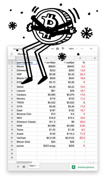 В прошлом месяце основные криптовалюты претерпели значительный спад. Исключением стали Tron, Bitcoin Gold (но он сильнее других просел летом) и Ripple. Общая капитализация криптовалют упала до отметки в $200 миллиардов, из которых на биткоин приходится 111 миллиардов $ (больше 50% рынка).