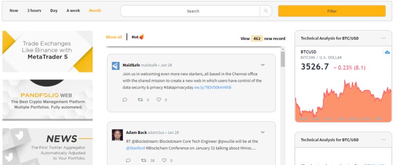 PANDORA TODAY - Это информационно аналитический портал. В котором мы совместили Twitter агрегатор лиц влияния в криптосообществе, twitter от создателей криптовалют и ICO проектов, twitter от криптобирж и новостных источников о криптовалютах. Уникальность портала состоит в том, что при активации аккаунта на Pandora и добавлении API биржи, на портале pandora.today Вам будет предлагаться информация и аналитика согласно монетам, находящимся в Вашем крипто портфеле. Удобный фильтр позволит настроить поток новостей согласно Вашему пожеланию.