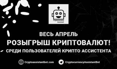 Начните пользоваться Telegram ботом Крипто Ассистент и вы можете выиграть криптовалюту! Весь апрель мы будем разыгрывать криптовалюты среди пользователей Крипто Ассистента. Розыгрыши будут проходить каждую неделю по пятницам.