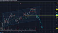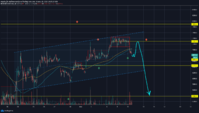 1. Цена отскакивает вверх от РОС проторговки на уровне 6800$ и идет вверх забирать залоченых игроков на уровне 7300$, на объеме которых мы пойдем ломать локальный тренд и увидим корекцию к первой цели уровень 5300$, а дальше с большой вероятностью поход к 3900$ и возможно обновление дна.
