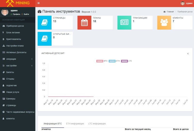 Скрипт облачного майнинга! Здравствуйте,предлогаем вашему вниманию скрипт облачного майнинга.Мы команда которая занимаемся разработкой различных проектов на криптовалюте.Продаем готовые проекты ,а так же занимаемся разработкой под заказ. Что есть в данном скрипте: 1) Очень удобная "Админ панель". Функции админ панели: - Приборная доска - Блок питания - Криптовалюты - Настройки плана - Активные Депозиты - операции: Все транзакции депозиты История вывода Запросы на снятие средств Всего комиссий Пользователь Кошелек Кредит Пользователь кошелек дебет Интерес бонус Запросы на утверждение - настройки: Настройки компании Шаблоны электронной почты Способ оплаты Настройки оплаты филиал выплата - Билеты - Отзывы - подписчик - Наши услуги - Баннеры - страницы - Часто задаваемые вопросы - клиенты Настройки компании Шаблоны электронной почты Способ оплаты Настройки оплаты филиал выплата Скрины некоторых функций предоставлю под описанием.(Все чем можно было упростить Администрирование проекта все есть!). 2.Панель самого пользователя и функции: Приборная доска -Инвестиционный план -депозиты -Сделать вывод -Сделка -История депозитов -Заработанные проценты -Комиссионные -бонус -Запросы на снятие средств -История вывода -Кошелек Кредит -Кошелек дебет -Переходов -Баннеры -Билеты Так же настройки пользователя туда входят: настройки кошельков криптовалют на которые пользователь хочет выводить средства,так же есть Два FA. Так же доход отображаеться графиками. На самом сайте стоит хороший дизайн под все мобильные версии. Так же есть возможность установить мобильное приложение ios и android естественно немного нужно доплатить. Стоимость данного скрипта всего 150$ без доработок,стоимость доработок зависит от того ,что вы хотите добавить и изменить. Так же при покупке скрипта за 180$ адаптивный дизайн под вас!!! На запрос отвечаем быстро в течении 10 минут. Пишем на почту: [email protected] Есть возможность получить скрипт бесплатно,для этого нужно привести 2 покупателя.