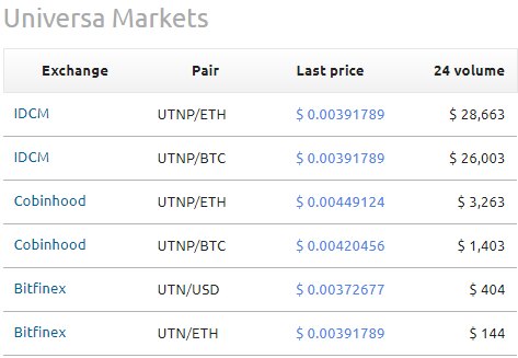 Кстати, Универса (UTNP) есть на Битфиниксе. Так что, как минимум, данный тезис ТС "Последними конвульсиями проекта был листинг на средненькой бирже" не подтвердился. Уж не знаю, лохотрон ли Универса или нет, но как минимум на одной крупной бирже есть. А фактов скама нет. Есть только факт кидалова Бородичем копирайтинг-конторы, который также требует дополнительных пруфов. Что касается курса Universa, который неуклонно падает с начала 2018 года. Так подобное падение, на 80-90% испытали многие альткины и само по себе это не говорит о скаме. Скам - неисполнение обязательств. Невыполненные обещания тоже, косвенно, скам.
