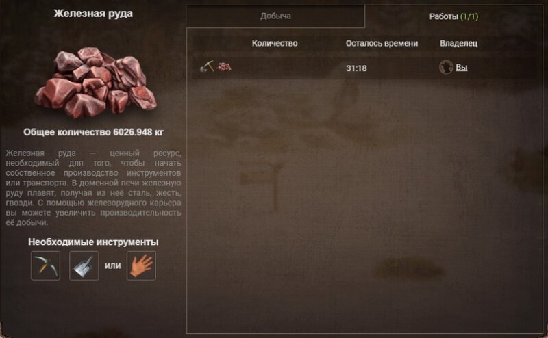Добываемые ресурсы хранятся в инвентаре Ваших персонажей.