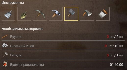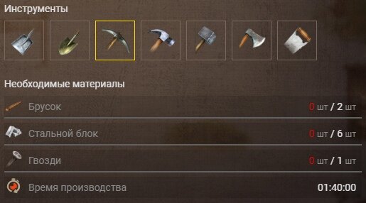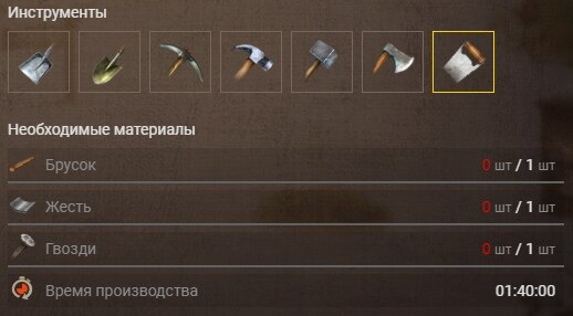 Для создание любого инструмента нужны материалы, а т.к. Вы уже научились добывать ресурсы, то создание материалов будет не проблемой.