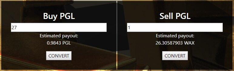 1000 GOLD = 1 PGL = 27 WAX = $0.54 ( по курсу обмена на 9 декабря 2019 )