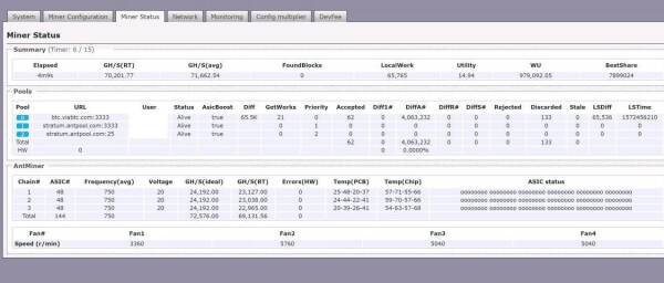 Antminer S17 and T17 custom firmware! If you own a mining farm/hotel or have a large number of S17 or T17 500+ contact me for a better deal and to hear about our partnership program. Asic.to has developed a firmware for the Antminer S17/S17 Pro and T17 Antminer. You can download and install it on your machine to improve your profits. Antminer S17 / T17 Overclocking Performance ~+30% The ability to downvolt ~ 15-25% Antminer S17(normal) to 70-85th/s (~3100-3760w) Antminer T17 up to 65th/s (consumption ~ 3000W) Antminer T17 Downvolts to 1900w at 42th/s - 45w/th (Attention! Firmware is still new, in order to avoid breakdowns it is recommended to increase overclock slowly.) Features Overclocking: over 85th/s with S17 and 65th/s T17! ASICboost and autotuning: On all of our versions include auto-tuning frequency to get the best efficiency as well as utilizing ASICboost. Decrease Hardware Errors ENERGY SAVING No Bmminer Immersion-ready/Fan Disable: Support for high-efficiency liquid immersion cooling by disabling the fan in the settings. Lower Thermal Threshold: Lowers default overheat protection to ensure machines last longer. Full-farm deployment: Send out a configuration file to an unlimited number of miners on the same network. No reboot required! Power monitoring: Built-in wattmeter function. Search: Find Other Asic on the network. Password Change: Ability to mass change passwords and ssh port. Multi-ASIC roll-out: Setup one machine and install it on all of them with just 1 click. Free – Download and begin using immediately. Small 2.8% fee to keep the project going. Supports popular ASICs: Support for all Antminer S17/T17,S9/S9i/S9j models. Stable: Automated voltage tuning for best hashboard stability and performance. Sleep Mode: Mining can stop and fans drop to normal speed using very little power. Asic Virus Scanner: Tool that checks pre-owned asics for night switcher and other variants. Easy Uninstallation Check out: Download: Firmware for Antminer S17 (Overclock up 85th/s) Download: Firmware for Antminer T17 (Overclock up 65th/s) 45w/th Notice you need to unlock SSH for the S17 and T17 models. Click here for download on app to unlock SSH. Notice: When using chip Manual Tune. DO NOT increase chip frequency above 20% of base frequency of board. Just use AutoTune!!! Please Take Notice As we all should know my now tampering with your machines can damage the machine. Do so at your own risk... But have fun! TO THE MOON edit: I have been notified someone is possibly impersonating on telegram. Telegram chat for assistance: https://t.me/AsicTo Hi guys. I am glad to present the first official release of the Best mining firmware version 1.0.0 for Antminers s17 & T17 Change log: 1. General stability. 2. Correction of profile parameters for S17 / T17. 3. Improved nicehash support (extranonce subscribe). 4. Added trigger to disable / enable voltage (cold start). 5. Added trigger to disable / enable domain unbalance check. 6. Added the ability of target chip temp (new proprietary and much cooler adjustment method, which significantly reduced fan speed). 7. Implemented support for a “quiet" start of the miner. 8. Automatic transfer of the miner to warm-up mode when starting in cold conditions. 9. Added registration of dead chips during autotune. 10. Improved and significantly reduced the launch time of the miner. 11. Added saving chips freq / autotune result for subsequent manual pre-tuning. 12. Added checking for all types of viruses that we know about today. 13. All functionality is added to the config multiplier section. 14. Activated time zone. 15. Added the estimated power consumption by the miner (electronic wattmeter). 16. The status of the miner (its API) is available immediately at startup after 15 seconds. 17. Added The ability to set the critical temperature of the chips to automatically disable the hash board. 0.9.9 1) The autotune work has been finalized and fully adjusted. 2) Completely rewritten algorithm for adjusting the voltage of the chips. 3) Improved method for controlling unbalanced domains. 4) Adjusted and fully customized profiles. 5) Added compatibility with BTC Tools version 1.2.6. 6) Fixed config multiplier with batch propagating workers. 7) Added pool support for nicehash.com. Cool Added pool support for warphash.com. 9) Checked and fixed stability of the emcd.io pool New release, 0.9.8_beta for Antminer S17 & T17 models What is done: 1. General stability 2. Extended and refactored the main driver. 3. The next iteration of refinement and improvement of errors (HW) 4. Hash rate loss on some pools was analyzed and fixed. 5. Added support for P2P pool. 6. Activated the multiplier for the distribution of mass batch configs. 7. Work on with the reading of temperature sensors I2C 8. Created more than 10 overclocking profiles. 9. Added autotune!!! (note, autotune results are saved in a separate config, when changing a profile to a new one and returning to the previous profile, a repeated autotune is not required, except for a forced retune by the user). After the completion of the tune, “temporarily” changes to the chips in the manual section of gui are not displayed. 10. Autotune is taken out as a separate log in the profiles section. 11. Automatic reboot when unbalancing domains to save chips from burnout. 12. Added manual downgrade of the entire domain.