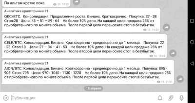 2. Аналитика по BTC, и по всем перспективным альткоинам. 1-2 раза в день. Пять, шесть дней в неделю.