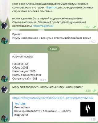 Разоблачение канала о блокчейне Prometheus Сначала ловит, а потом кидает: очередная выходка кидалы Руслана Соколовского Когда какой-то блогер на ютубе набирает популярность, он автоматически зарабатывает высокую репутацию и доверие со стороны рекламодателей. Блогерам просто невыгодно заниматься мошенничеством, поскольку в долгосрочной перспективе это сработает против них самих же – Интернет помнит все. К сожалению, не всегда популярность гарантирует соблюдение сделки, и поэтому рекламодатели несут определенные риски, поскольку вносят предоплату за интеграцию рекламы в YouTube-ролике. Речь идет об известном канале Prometheus, посвященному тематике блокчейна и криптовалют. Недавно с этим каналом произошел неприятный эпизод, когда рекламодатель заказал размещение своего рекламного ролика на канале Prometheus, а автор этого канал забрал деньги, так и не разместив интеграцию. Сначала рекламный менеджер канала Николай Романов долго “водил за нос” рекламодателя, убеждая его, что ролик вот-вот выйдет на канале, а затем вовсе перестал выходить на связь. Расскажем об этом случае мошенничества с каналом Prometheus подробнее. 4 мая представитель проект Ethpump связался с менеджером канала Prometheus Николаем Романовым через его официальный Telegram-аккаунт (@romanovastro), указанный в описании канала Prometheus в телеграме. Они договорились о размещении рекламного ролика на YouTube-канале и оговорили сумму для публикации – $500. Николай Романов заверил представителя Ethpump, что ролик выйдет в течение недели. После того, как размещение утвердили, представитель перевел оговоренную сумму на биткоин-адрес, предоставленный менеджером. Транзакцию вы можете посмотреть на скриншоте, приведенном ниже. Транзакцию можно проверить самостоятельно в блокчейн-обозревателе, указав Tx ID или хеш транзакции, чтобы убедиться в достоверности. После оплаты рекламодатель уточнил, когда выйдет следующий видеоролик с интеграцией, но сообщение осталось без ответа. Близился конец недели, и заказчик хотел уточнить сроки выхода ролика. Далее последовало просто возмутительное поведение! Николай Романов ответил только с третьего раза и уверял, что ролик находится в монтаже. Затем при следующих обращениях получал приблизительно такие же по сути ответы: что подготовка видеоролика находится в процессе, и он уточнит дату его выхода на канале Prometheus. Прошло более недели, но автор так и не выложил ролик с интеграцией после того, как менеджер забрал деньги. Хотя менеджер и продолжает выходить на связь, но все ограничивается банальными отмазками – он продолжает нагло кормить рекламодателя “завтраками”. Так оказалось, что менеджер этого известного канала Николай Романов – мошенник. Вот так легко без зазрений совести можно кинуть любого человека, и на месте представителя может оказаться кто-угодно. Достоверно неизвестно, кто является менеджером – реальный посторонний человек или сам автор канала Руслан Соколовский. Вот такой сюжетный твист: автор канала может прикинуться, что он не имеет к этому отношения, но нельзя установить, что Николай Романов – реальное лицо, которому принадлежит аккаунт. А это позволяет неплохо выкрутиться из ситуации. Хотя сухим из воды все равно не вылезти, т.к. сам автор непосредственно несет ответственность за тех, с кем он работает. С Русланом Соколовским ранее уже случился скан