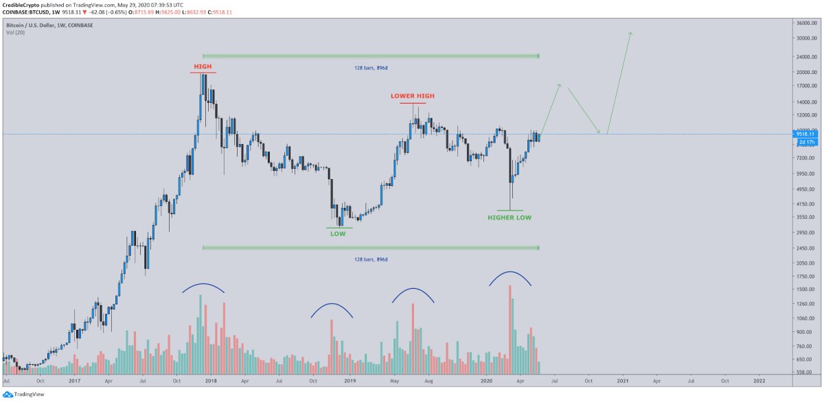 По мнению аналитика, все движения курса первой криптовалюты с декабря 2019 года описываются лишь как «одна крупная фаза аккумуляции», в ходе которой инвесторы набирали позиции и готовились к новому росту биткоина. Он заявил, что консолидация скоро закончится и курс биткоина взлетит значительно выше предыдущего рекордного уровня в $20 000.