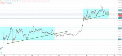 О текущей ситуации на рынке рассказывает трейдер Илья Мещеряков. BTC уже солидно потрепал держателей коротких позиций ложным пробоем до $12 400 и ненадолго оставил их в покое. Движение вниз еще может продолжиться для сбора стоп-ордеров покупателей. Первые из них были расположены под $11 500 и уже собраны, тогда как те, что ниже $11 300 (вторая вероятная зона SL покупателей), остались невредимы. На среднесрочном горизонте ожидаю несколько этапов снижения — ниже $11 300 (к нижней красной зоне на графике снизу), а затем и до $11 000 — это нижняя граница ценового канала, в котором сейчас находится актив. Эти падения будут чередоваться с ростом после прохождения локальных минимумов. Вероятные зоны стоп-лоссов покупателей (нанесены красным снизу) и зона сопротивления (нанесена красным сверху). В дальнейшем BTC может уйти во боковик, как это было в мае-июле 2020 года, однако его длительность будет меньше. Биткоин рисует похожую формацию, но более быстрыми темпами (сравнение ниже на графике). Если провести сравнительную аналогию, то получим примерно еще 2-3 недели боковика. Долгосрочные перспективы остаются позитивными. Рынок еще не исчерпал накопленный запас сил и только пришел в себя после падения начала этого года. Соответственно, целевая отметка пока не изменилась — $13 100, после выхода из текущей консолидации. Более глобальные цели можно будет ставить после достижения этих отметок.