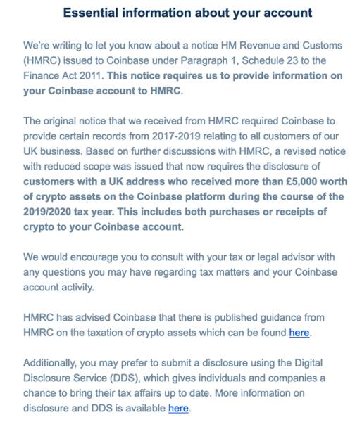 Биржа Coinbase передаст налоговым органам Великобритании данные о своих клиентах, которые получили криптоактивы стоимостью более £5000 (около 505000 р. по текущему курсу) в течение последнего года. Изначально HMRC требовала от Coinbase предоставления определенных записей о британских клиентах биржи в период с 2017 по 2019 год. Однако после обсуждения с налоговым органом требование было изменено, и теперь оно затрагивает только некоторых пользователей платформы. В письме Coinbase отмечается: Граждане Великобритании обязаны платить налог на прирост капитала по доходам с криптовалют. Любая информация, которую получает HMRC, скорее всего, будет использована для проверки правильности налоговой отчетности физических лиц.