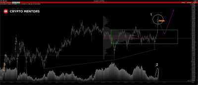Своим видением ситуации поделился основатель проекта Crypto Mentors Никита Семов. ------------ На прошедшей неделе был большой спред и маленький объем, что свидетельствует о легкости в направлении покупок. Прогресс увеличивается и цена подходит к ключевому уровню в $20 000. Ожидаем от наступившей недели закрытие баром покупок. Но будьте внимательны, у данной горизонтали может пойти коррекционная волна. Полагаем, что в дальнейшем она не будет значительной по углу атаки. Японские свечи показывают модель «Ерикири» — бычья бодзу, большая белая свеча, признак значительной силы. В контексте данной модели также ожидается рост. Price Action и VSA Анализируя спотовый график можно сделать вывод о наличии баланса, имеющего форму реаккумуляции на часовом графике. Атака продаж слабая и безинициативная, тем не менее формируется локальный паттерн ложного пробоя на оттестированный уровень $18 969. Это является девиацией, а значит может последовать снижение цены примерно к отметке $18 350, откуда уже нужно будет следить за реакцией быков. Потенциальной точкой входа в лонг может быть импульсный пробой горизонтали с закреплением. Биткоин выглядит очень сильно, шортить такое движение с удержанием больше суток просто бесполезно. Анализ горизонтальных объемов и дельты На данный момент цена выглядит крайне позитивно. Мы уже закрепились над всеми важными POC и VA баланса. Однако учитывая тот факт, что сам пробой оказался слабым, а по верхам выскочили объемы [1], можно ожидать откат к зоне стоимости текущей недели — в район $18 400-$18 690. После этого вероятно возобновление восходящего движения. Также можем видеть интенсивный рост ОИ [2], что говорит об истинности данного движения. В глобальной перспективе биткоин смотрится крайне лонгово.