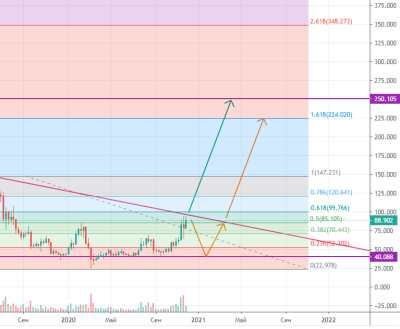 На tradingview прогнозируют мощный рост при сохранении бычьего тренда. Лайт за последний месяц поднялся до 94$, падал до 64$ и снова вырос до 90$. Подборочка актуальных прогнозов. Пробитие вверх при максимальном сужении клина (график к биткоину) Возможно повторение февральского сценария перед сменой тренда (график к биткоину) График к биткоину. В зависимости от поведения биткоина, цели 40$ или 150$. При сохранении бычьего тренда дальнейший поход в зону 250$+. График к доллару. Осторожный прогноз. Поддержка на 65$ может обеспечить двухкратный рост при сохранении бычьего тренда. В целом аргументы за рост: • карта Litecoin Visa • Конфиденциальность / взаимозаменяемость с тестовой сетью Mimblewimble в ближайшее время • В этом году хешрейт вырос на 50% • Объем транзакций в этом году вырос на 100% • Общее количество адресов выросло на 400% с августа 2017 г. • 500 миллионов долларов США в день Но нужно помнить, что лайткоин вторичен к биткоину и резкое падение курса биткоина может спровоцировать еще более сильное падение курса лайткоина.
