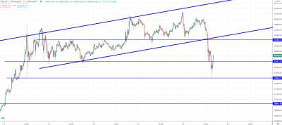 Сразу после установления нового исторического максимума на отметках выше $24 000 биткоин начал стремительно падать и на момент написания обзора торгуется у отметки $23 000. Подобную ситуацию можно было наблюдать ранее — обновление исторического максимума сменяется существенным снижением цены, которое ускоряется за счет ликвидаций позиций многочисленных покупателей. Несмотря на то, что отметку в $25 000 достичь не удалось, свою главную цель крупный капитал смог выполнить — выбить изначальные шорт-позиции походом выше $24 000. Похожая ситуация была около месяца назад — 25 ноября цена, двигаясь в восходящем канале и сформировав новый максимум, начала движение вниз. Цене удалось пробить нижнюю границу канала и продемонстрировать три волны нисходящего движения. По аналогии можно предположить, что цена биткоина реализует сценарий, указанный на графике внизу: небольшой рост чуть выше $23 000; снижение к $20 500-$21 500; продолжение глобального нисходящего тренда. На небольшом таймфрейме для первой цели краткосрочного роста можно отметить котировку $23 228, а в качестве цели дальнейшего снижения — $20 854. Важными рубежами для фиксации позиций выступают уровни, которые останавливали текущее снижение — $21 800 и $22 420. Стоит отметить и сильную реакцию рынка альткоинов — значительное снижение по ряду монет говорит о панических настроениях в условиях частичной неопределенности. Эта неделя вполне может стать «красной» для биткоина. Этому способствуют как внешние факторы, так и технические паттерны. И если говорить об открытии шорт-позиций пока еще рано, то момент для фиксации лонг-позиций (по крайней мере, частичной) может быть вполне подходящим.