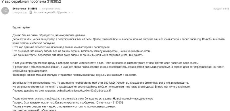 Почтовые вымогатели, пополняйте сборник вариантов шантажей )