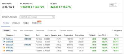 Будущее за технологиями блокчейн! Инвестируй в эти проекты вовремя, мы выбрали самые перспективные! Инвестируя с нами Вы получаете: • Готовый портфель криптовалют Мы все сделали за Вас: выбрали самые перспективные проекты и технологии блокчейн, добавили математики и эконометрики и расчитали доли каждой монеты в портфеле, чтобы было прибыльно и безопасно! • Качественное сопровождение и сервис Нет опыта? - не проблема! Дадим перечень надежных бирж криптовалют, которые используем сами. Поможем зарегистрироваться на бирже, пройти верификацию документов, безопасно купить и продать криптовалюту. Условия инвестирования 1. Расчетная доходность 124,2% Это ожидаемая прибыль, по достижению которой мы фиксируем все сделки и выходим с рынка. 2. Расчетный риск 26,4% Это сумма, на которую допускается уход в минус при внезапных движениях рынка в противоположную сторону. 3. Период инвестирования от 3 до 12 мес. Это время с момента запуска портфеля и до достижения расчетной доходности. 4. Минимальный депозит $2000 Рекомендованный депозит от $5000. Структура портфеля Долевое участие каждой монеты в портфеле разное. Подбирается нашей инвестиционной моделью в зависимости от момента запуска портфеля, доходности и риска каждой криптовалюты. Техническая реализация портфеля • 1. Регистрация на бирже криптовалют Регистрируем Ваш личный кабинет на бирже криптовалют. Проходим верификацию документов и личности на бирже. от 30 минут • 2. Пополнение депозита на бирже Покупаем Bitcoin напрямую на бирже с банковской карты или через обменку. от 15 минут • 3. Запуск Портфеля криптовалют Покупаем все монеты Портфеля, который ранее оговорен с Вами, и соответствует Вашему депозиту. от 30 минут • 4. Период инвестирования От 3 до 12 месяцев. Самый минимальный период инвестирования был в 2017 и в 2020 году - 2 месяца. • 5. Фиксация прибыли По достижению расчетной доходности +124,2% продаем криптовалюты Базового портфеля, фиксируем прибыль. 30 минут • 6. Вывод прибыли Выводим депозит и прибыль с биржи. Или реинвестируем. Или часть выводим, часть реинвестируем, по Вашему желанию. от 30 до 60 минут Это твоя возможность заработать 124,2% годовых. Хочешь попробовать? Пишите мне в личку "Крипто-портфель" В стоимость услуг включено: Выбор надежной биржи криптовалют. Регистрация и верификация аккаунта на бирже, пополнение депозита. Готовый портфель криптовалют. Выбор момента запуска портфеля. Запуск портфеля. Оптимизация портфеля на протяжении периода инвестирования. Фиксация позиций по достижению расчетной доходности. Вывод депозита и прибыли. Стоимость наших услуг 20% от расчетной доходности. Доплата 10%, оплата с фактической прибыли. Основной стартовый капитал мы заработали в 2017 году на росте криптовалюты Ethereum. В то время ресурс был достаточно ограниченным. Мы понимали, что нам надо достаточно много денег для инвестирования и тестирования наших Продуктов. Решили на тот момент, что инвестиция в Bitcoin это хорошо, но нам нужен актив, который стоит достаточно дешево, и может вырасти на очень много процентов. Интуитивно понимали, что данный актив должен владеть ценной базовой технологией. В 2017 г. самым ярким был именно Ethereum. После бурного роста до $12 за монету (в октябре 2016 г.), в январе 2017 г. мы увидели $8 за монету, что на 33,4% дешевле. Тогда мы рискнули и купили Ethereum на $8000, по $8.30 за монету. Мы знали, какая сумма нам н