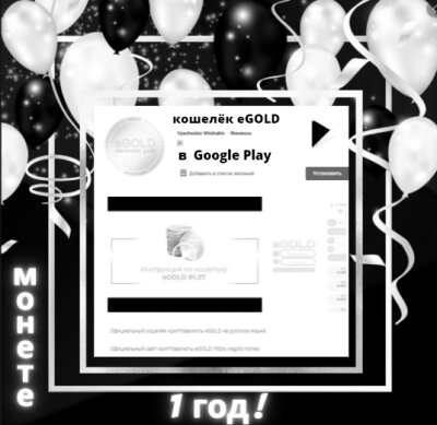 ДЕНЬ РОЖДЕНИЕ монетки. ПЕРВЫЙ важный и полезный подарок всем участникам eGOLD. На официальной странице в Google Play появился официальный кошелёк eGOLD для Android: https://play.google.com/store/apps/details?id=ru.egold.wallet Смело переходим на страницу в Google Play, устанавливаем кошелёк и делимся там своими впечатлениями! Вскоре будут опубликованы интересные новости и конкурсы в честь ДНЯ РОЖДЕНИЯ монетки. Следите за новостями!