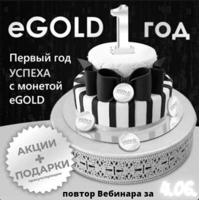 СЕГОДНЯ, 4.06.2021 в 20.00 по мск, вебинар о дне рождении eGOLD! С 10 июня 2021 года запускаются сразу 2-е АКЦИИ, на которых можно хорошо продвинуть монетку и каждому гарантированно заработать!! **Ранее уже проходила Акция "Я рассказал о eGOLD" и были награждены все участники, которые принимали участие. **Всего на сумму 46 780 монет eGOLD (65 500 рублей по текущему курсу). ЗАПИСЬ вебинара с подведением итогов доступна по ссылке: https://www.youtube.com/watch?v=UkWl4hnnR50 ПОДРОБНЕЕ об акции,которая начнётся 10 июня ! 1. подпишись в группу https://vk.com/egold_pro?w=wall-203167673_609 . 2. сделайте репост (этого поста) к себе на личную страницу в В.К. 3. закрепи , пост у себя до 10 июля ( окончания акции ) получите бонус в размере 100 монет eGOLD . За каждый видео отзыв до 2 500 eGOLD (3 500 рублей по текущему курсу.) За каждый комментарий 20 монет eGOLD (28 рублей по текущему курсу) Победителю ,в каждой акции, бонус до 3 000 монет eGOLD (4 200 рублей по текущему курсу) . .............Условия участия! 1) Акция "Я создал видео о eGOLD" перейдите по ссылке: https://docs.google.com/forms/d/e/1FAIpQLSfZwEaTzsDrO.. 2) Акция "Я рассказал о eGOLD" перейдите по ссылке: https://docs.google.com/forms/d/e/1FAIpQLScJBqSUXmgBO.. Подробнее - сегодня на вебинаре. Ссылка на вебинар: https://www.youtube.com/watch?v=HiKhJDGNvAo Также будут рассказано об итогах за год и недавно вышедшем кошельке для Android устройств доступном в Google Play: https://play.google.com/store/apps/details?id=ru.egol.. КАЖДОМУ пришедшему на Вебинар ПОДАРОК 100 монет eGOLD в прямом ЭФИРЕ, а самому внимательному 500 монет eGOLD!