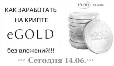 Планируйте! Мечтайте! Зарабатывайте! eGOLD поможет в достижении цели. Монета eGOLD надёжна, стабильна, без посредников и имеет стейкинг от 4 до 5% в месяц по сложному проценту. Полная анонимность, возможность смены ключа, равномерное распределение монет между пользователями- начисляются каждую секунду. Достойна ВНИМАНИЯ!
