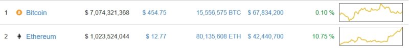 Это только так кажется, что легко взять и обойти. Это как у атлетов, 0.1кг блинам на грифе и штангу уже не поднять. Как минимум в 7 раз надо увеличить капитализацию. А это... А это очень большой показатель. Хотя Бутерин недавно заявил, что превзойдут капитализацию битка.